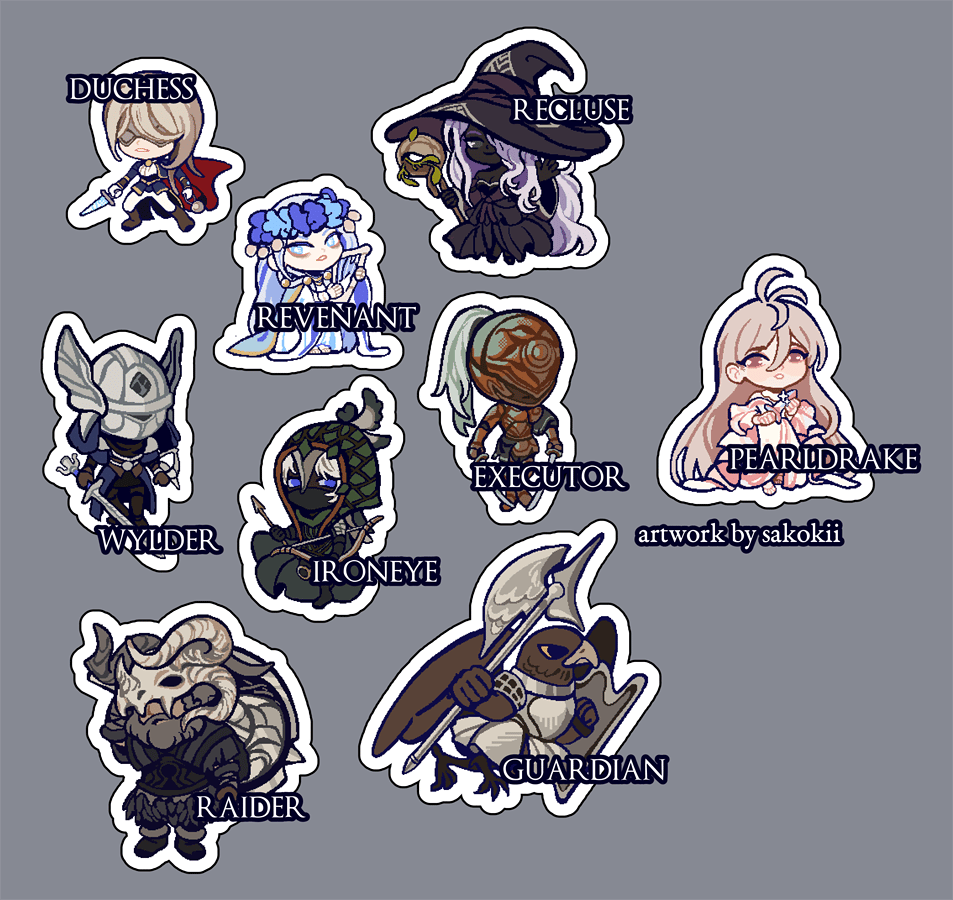 These are roughly 2.5 to 3 inch stickers inspired by Nightreign.